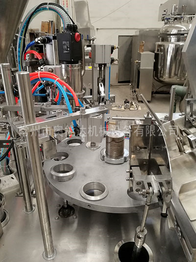 塑料復(fù)合軟管灌封機(jī)主要用于一次傳動(dòng)原理。利用分度機(jī)構(gòu)帶動(dòng)裝有夾具的轉(zhuǎn)盤作間歇運(yùn)動(dòng),完成自動(dòng)灌裝及內(nèi)外加熱、封尾、壓碼、切邊、成品退出等一系列功能。灌裝計(jì)量準(zhǔn)確,加熱時(shí)間穩(wěn)定、可調(diào)、封尾外觀漂亮、整齊、牢固、衛(wèi)生。切邊平整。該機(jī)設(shè)為10個(gè)工位,除人工上管外,其它均可自動(dòng)完成。整機(jī)運(yùn)行平穩(wěn)可靠,無噪音和其它污染。