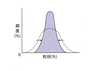 ![]() 相比傳統(tǒng)磨機(jī),即使在相同的平均粒徑,它可以得到集中的粒度分布。 |